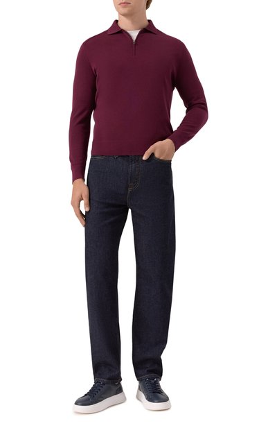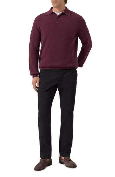 У приталенного поло есть все шансы стать ключевой деталью образа с джинсами или костюмными брюками. Модель связали из пряжи, сочетающей кашемир и шелк. Пуллер короткой молнии выполнили в виде круглой эмалевой эмблемы.