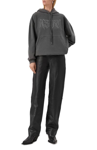 Свободное худи из хлопкового трикотажа френч терри украсили крупным логотипом спереди, придав сходство с университетской униформой. Модель со спущенной линией плеч и карманом «кенгуру» составит идеальный дуэт с парными джоггерами.