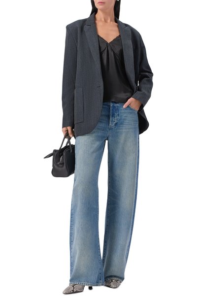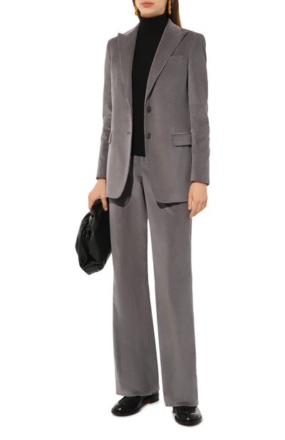 Прямой жакет с широкими плечами сделает любой образ более строгим. Для пошива модели с тремя карманами использовали чуть эластичную фланель на основе вискозы, шерсти первого пострига и полиэстера. Внутри – тонкий подклад.