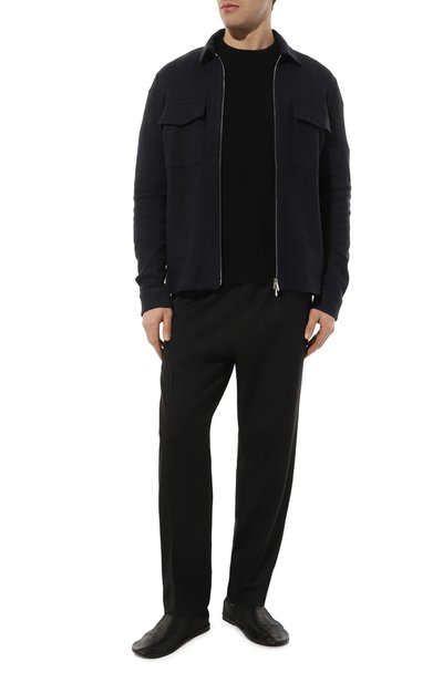 Слиперы с вставками из эластичного текстиля по бокам союзки сшили из зернистой кожи. Чтобы модель с круглым мысом на тонкой гибкой подошве плотно сидела на ноге, в кант по краю выреза вшили резинку.
