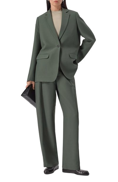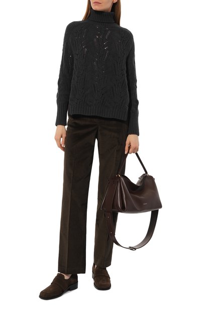 Широкие брюки выполнили из хлопкового вельвета с небольшим добавлением эластана. Модель дополнили парой боковых и двумя задними карманами.