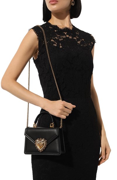 Небольшую сумку 3.5 из телячьей кожи украсили крупной металлической монограммой DG на клапане. Аксессуар с плоским карманом дополнили взаимозаменяемыми короткой ручкой с карабинами и скользящим плечевым ремнем-цепочкой.
