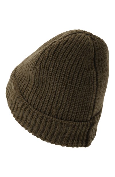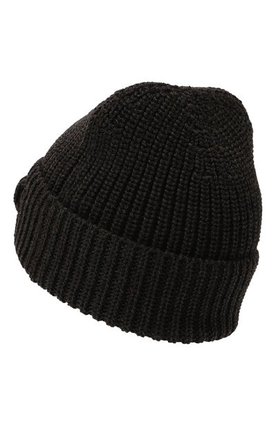 Шапку бини с фактурным полосатым узором связали из тонкой шерсти с добавлением нежного кашемира и прочных волокон вискозы и полиамида. Модель украсили контрастным кожаным патчем с рельефным логотипом в тон на широком отвороте.