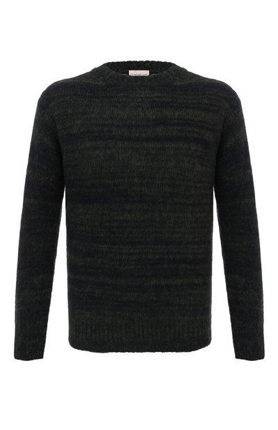 Свитер с узором в полоску связали из шерстяного мулине. Роль декора отвели фирменному патчу на левом рукаве. Облегающее изделие идеально дополнит повседневный гардероб.