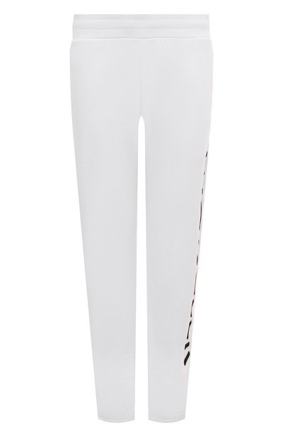 Левую брючину джоггеров украсили контрастным логотипом марки, поддержав его нашивкой сзади. Модель с тремя карманами и эластичным поясом выполнили из хлопкового трикотажа.