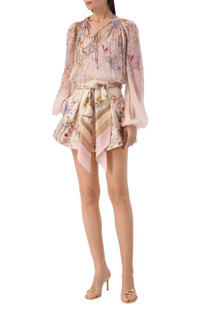Шорты А-силуэта – удачная альтернатива мини-юбке в образе с блузой и балетками. Для пошива модели с высокой посадкой использовали плотный хлопковый бархат. На широком поясе предусмотрели шлевки для ремня, по бокам – кар маны.
