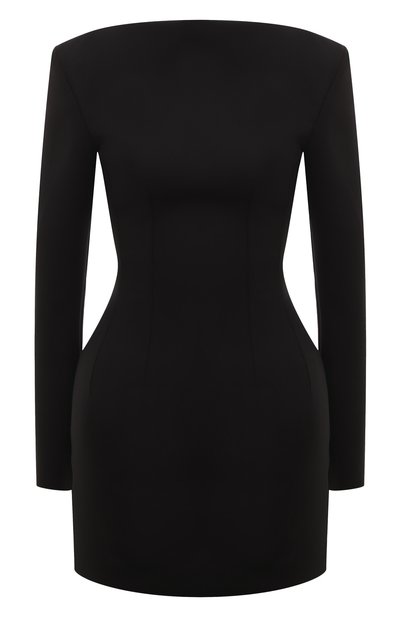 Мини-платье Arianna с длинными рукавами и вырезом лодочкой формирует силуэт «песочные часы» за счет множества вытачек. Модель из тонкой шерсти первого пострига застегивается потайной молнией на спинке.