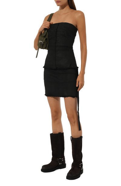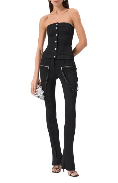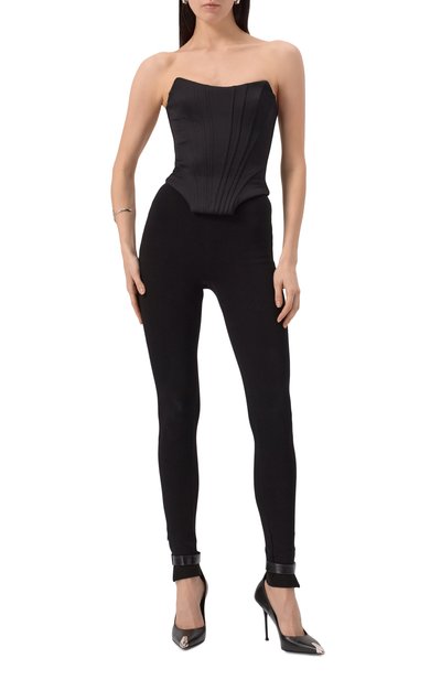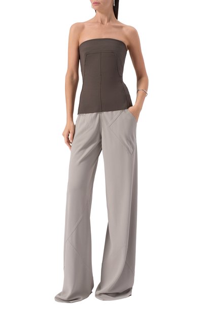 Приталенный топ-корсет – лучший способ продемонстрировать идеальную осанку. Модель с широким отворотом вдоль линии верха сшили из мягкой шерсти первого пострига и дополнили внутренними чашечками и потайной молнией сзади.