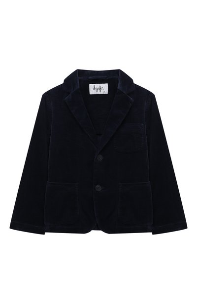 Пиджак с узкими лацканами и парой шлиц выполнили из слегка эластичного вельвета на основе хлопка. Модель с пуговицами в тон дополнили тремя накладными карманами.