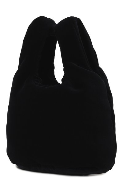 Сумку с двумя широкими ручками выполнили из бархата. Чтобы придать модели объем, ее дополнили легким наполнителем. Сбоку и внутри — по небольшому брендированному ярлыку.
