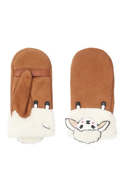 Перчатки сшили из чуть ворсового кашемира и фактурной кожи. Модель с вшитой резинкой, обеспечивающей плотное прилегание манжеты к запястью, украсили брендированным патчем.