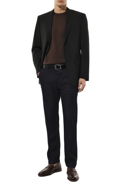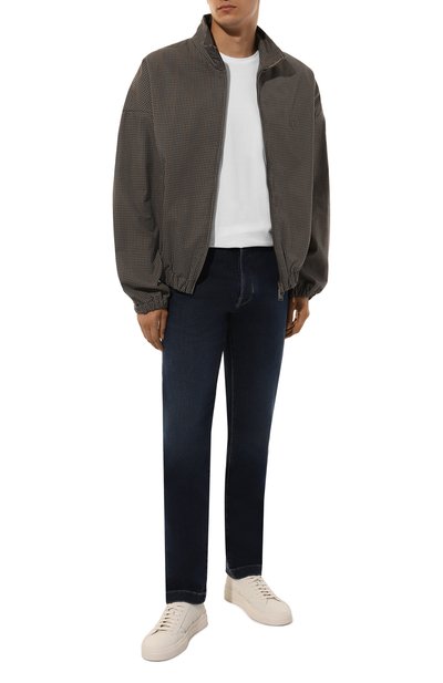 Немного зауженные джинсы сшили из стрейчевого денима с полутонами, утепленного легким кашемиром. Модель дополнили боковым, монетным и прорезными задними карманами, над одним из которых – нашивка с эмблемой бренда.