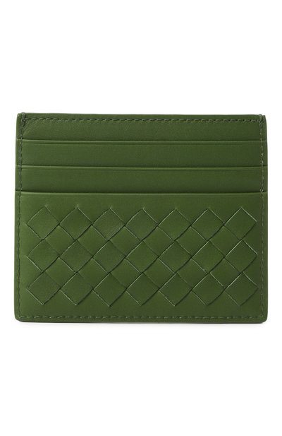 Футляр с шестью слотами для карт и отделением для чеков сплели в технике intrecciato из телячьей кожи. Компактный аксессуар поместится во внутреннем кармане пиджака или пальто.