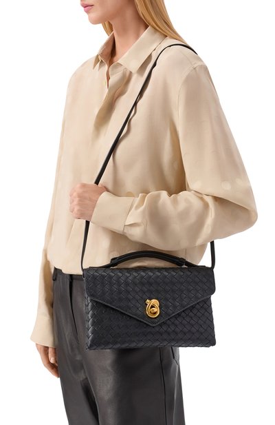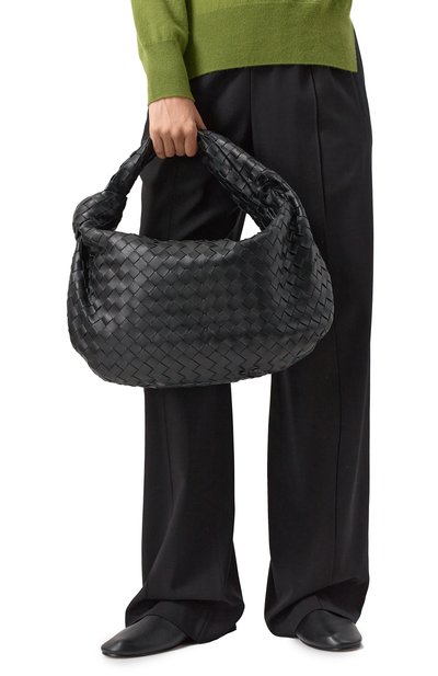 Сумку Wallace сплели в старинной технике intrecciato из узких полос телячьей кожи. На ручке предусмотрели две шлевки, регулирующие ее длину. Аксессуар с четырьмя пуклями, защищающими дно от царапин, застегивается молнией сверху.