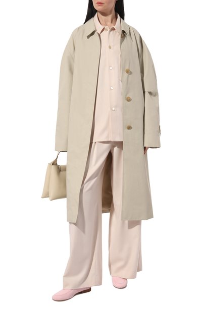 Лоферы Andrea на небольшом каблуке выполнили из овчины и украсили двумя помпонами в тон. Пару изготовили по технологии Flexible Goodyear welt, благодаря чему обувь получилась особенно гибкой.