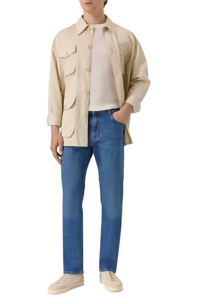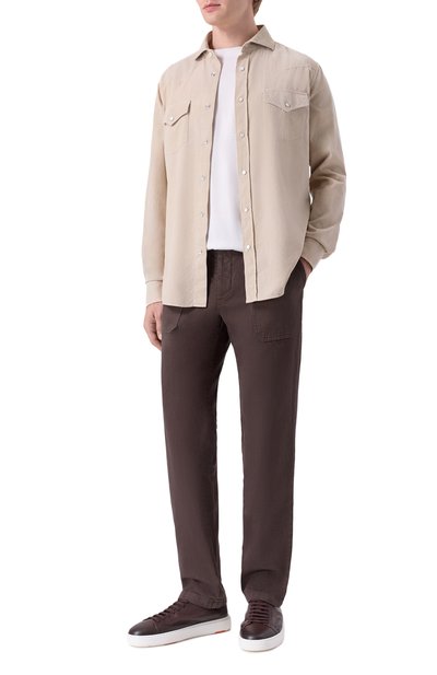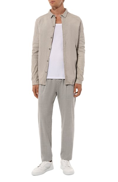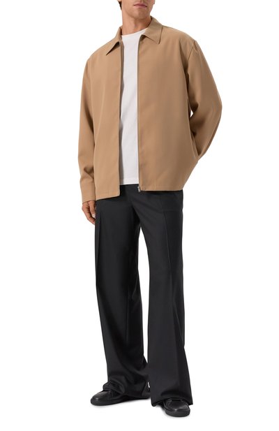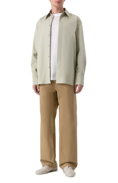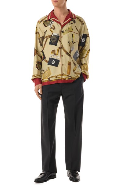Рубашку с закругленной линией низа сшили из шелкового крепа в крупный атласный горох. Модель с супатной застежкой органично дополнит непринужденный повседневный образ.