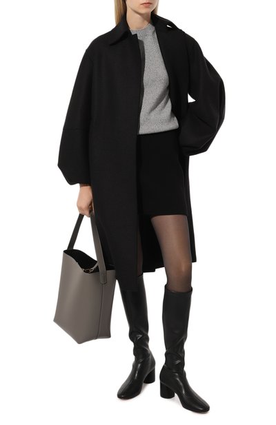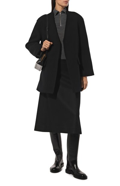 Прямое однобортное пальто с отложным воротником и боковыми карманами сшили из мягкой шерстяной ткани с чуть ворсистой фактурой. В комплекте – широкий шарф из того же материала, который наши стилисты предлагают накинуть на одно плечо.