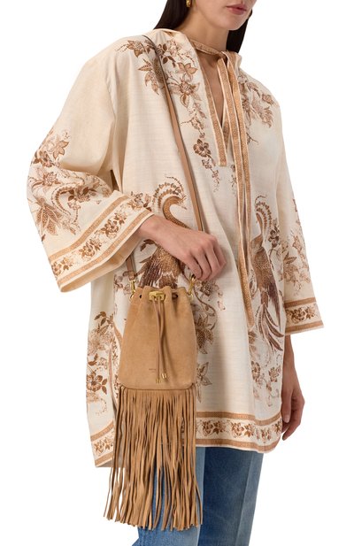 Сумка из длинноворсного искусственного меха станет акцентной деталью в образе. Для отделки аксессуара с длинным тонким ремнем-цепочкой использовали гладкую кожу. Внутри хватит места для картхолдера, телефона, ключей и помады.