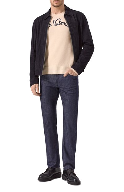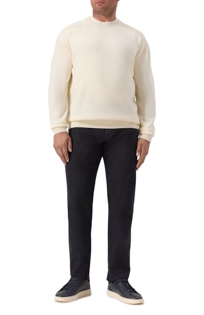 Свободный джемпер органично впишется в неформальный образ с джинсами или брюками. Для изготовления модели со спущенной линией плеч использовали пряжу из кашемира и шелка, укрепленную полиэстером.