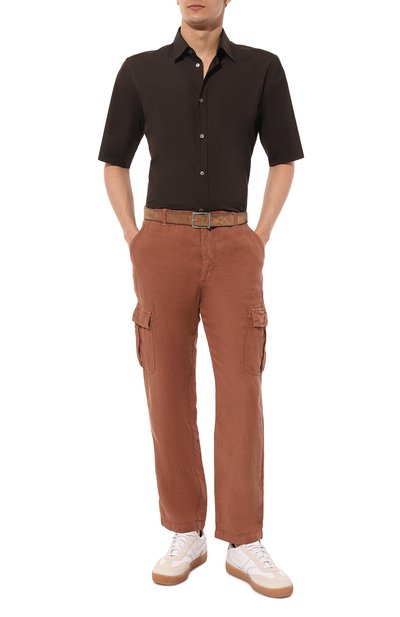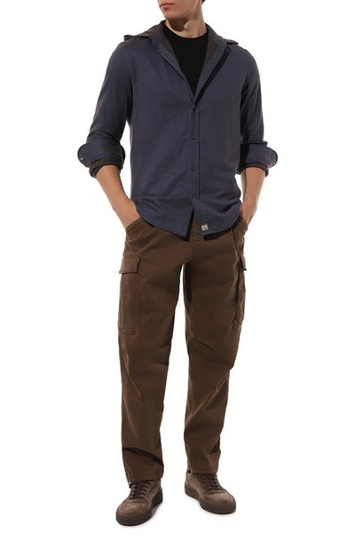 Брюки с эластичным поясом выполнили из хлопкового трикотажа. Помимо пары боковых и заднего карманов модель, украшенную логотипом марки сзади, дополнили четырьмя карго, на клапане одного из которых разметили ярлык с фирменным смайлом.