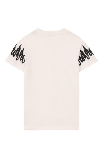 Логотип и эмблема марки на этой футболке из хлопкового джерси выглядят так, будто их выпо лнили от руки фломастерами. Рисунок поддерживает изображение фирменного эмодзи на изнаночной стороне.