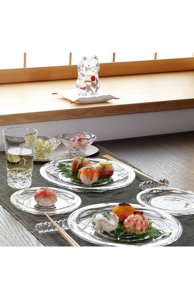Мастера мануфактуры, основанной Паоло Венини, выполнили набор Pezzente 3 по эскизу, который Джо Понти создал в 1947 году для Миланской триеннале. Пара стаканов из прозрачного муранского стекла ручной работы украшена вставками разных оттенков. Декор нанесли вручную горячим способом, так что каждое изделие уникально.