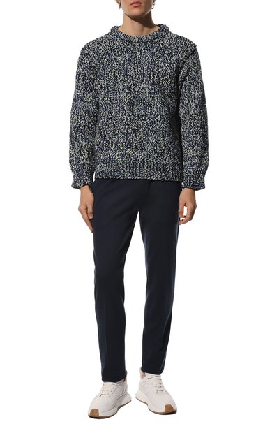 Шерстяные джоггеры со стрелками боковыми и задними прорезными карманами, а на брючинах с эластичными манжетами предусмотрели молнии. Наши стилисты предлагают создать повседневный образ с рубашкой и ботинками.