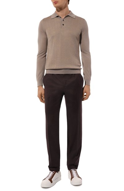 Джоггеры с отутюженными стрелками поладят и с толстовкой, и с неформальным пиджаком. Модель из шерстяной фланели дополнили боковыми карманами и задними с клапанами.