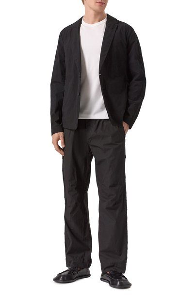 Двухслойные джоггеры с рельефными швами и драпированными накладками дополнили двумя боковыми и парой задних карманов. Модель из хлопкового трикотажа предлагаем носить с худи и кедами.