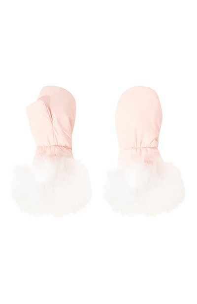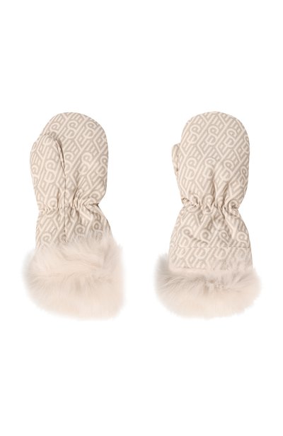 Варежки выполнили из полиэстера и наполнили утиным пухом с пером. Модель с эластичной вставкой на запястье, обеспечивающей комфортное прилегание, украсили отделкой из меха лисицы.