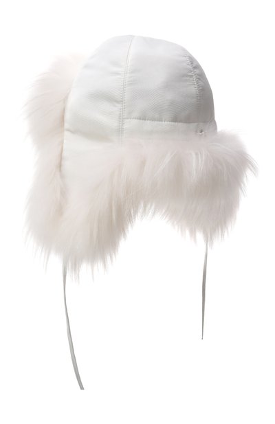 Шапку-ушанку сшили из непромокаемого металлизированного полиэстера, напоминающего серебристую фольгу. Для морозов модель адаптируют наполнитель из легкого пуха и отделка из пушистого меха белой лисицы.