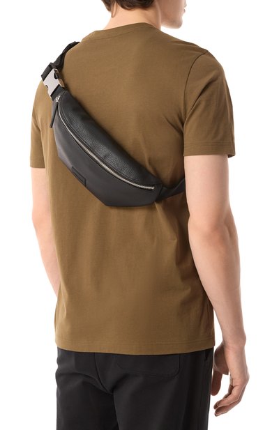 Поясную сумку Nesh из напоминающего кожу материала украсили патчем с металлической эмблемой марки. Аксессуар с регулируемым ремнем, застегивающимся фастексом, дополнили двумя карманами: внутренним открытым и внешним на молнии.