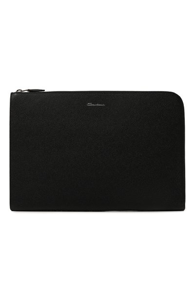 Футляр для документов, представленный эксклюзивно в ЦУМе, сшили из зернистой сафьяновой кожи. Аксессуар, застегивающийся на угловую молнию, декорировали серебристым тисненым логотипом. Внутри — петля для авторучки.