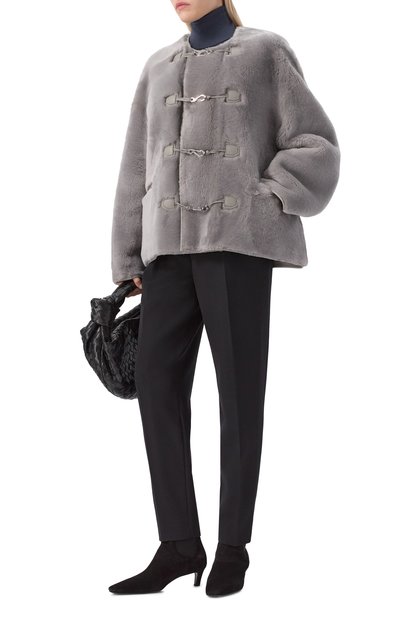 Укороченная дубленка сшита из мягкой пластичной овчины с густым шелковистым ворсом. Модель с широким отложным воротником и рукавами реглан дополнена крупными накладными карманами с клапанами и боковыми входами для рук.