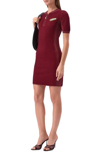 Приталенное миди-платье с кнопками по всей длине спереди сшили из фактурного смесового твида. Края подола, коротких рукавов и круглого выреза подчеркнули густой бахромой и серебристыми цепочками с крупными звеньями, усыпанными сверкающими кристаллами.