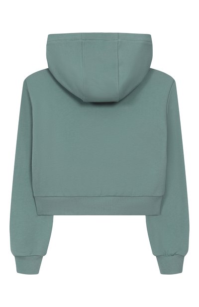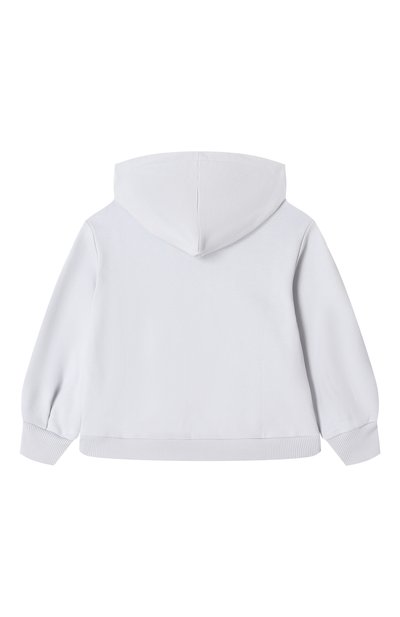 Для пошива худи с фирменным зигзагообразным паттерном выбрали трикотаж из гипоаллергенного хлопка. Крупный логотип на груди вышили нитями и пайетками, сформировав градиент. За счет эластичного пояса и манжет модель не пропускает внутрь прохладный воздух.
