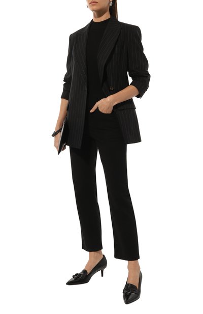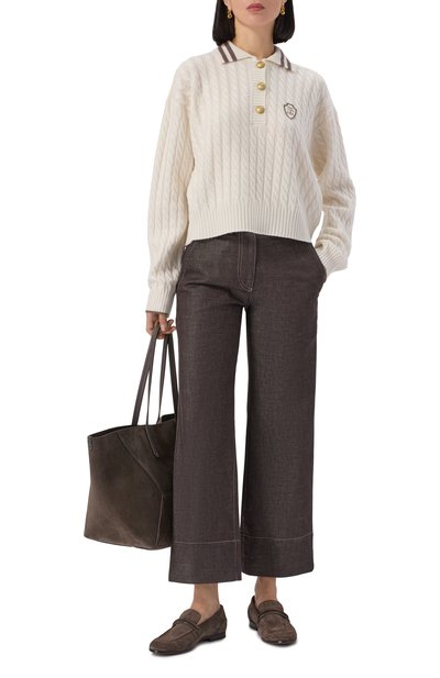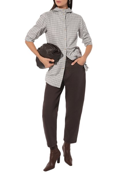 Укороченные джинсы с высокой посадкой и пятью карманами станут основой непринужденного повседневного образа. Брюки из хлопкового денима стрейч украсили вышитой фирменной литерой К на поясе.