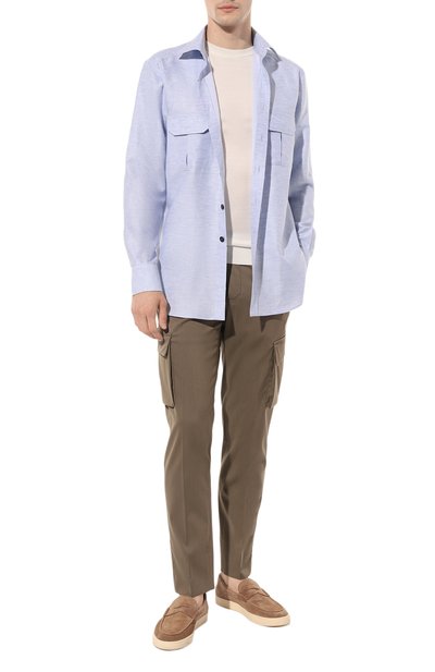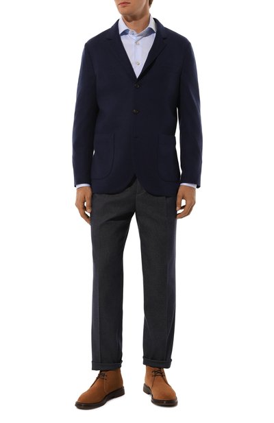 Неоднородный синий оттенок придает рубашке с нагрудным карманом сходство с джинсовыми моделями. На самом деле чуть приталенная модель сшита из более тонкого микса хлопка и лиоцелла с шевронным мотивом.