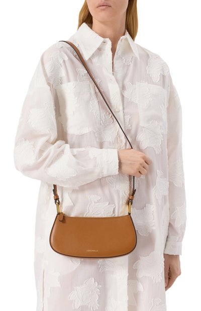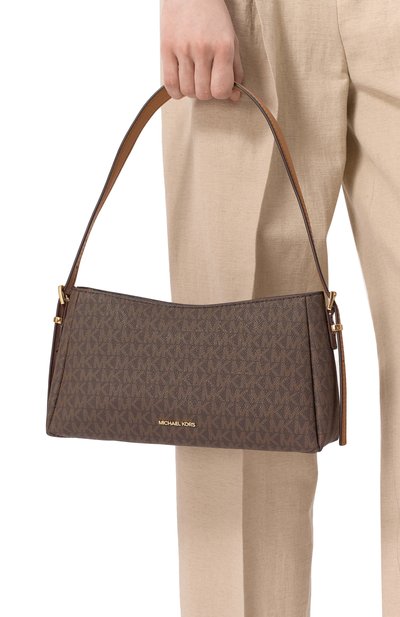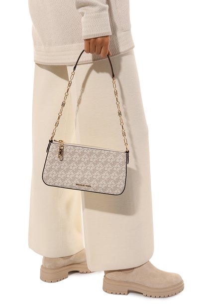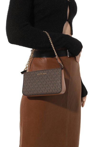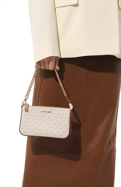 Сумку Empire выполнили из материала, напоминающего кожу. Изделие украсили логотипом бренда на лицевой панели и фирменным паттерном по всей поверхности. Внутри модели с длинной золотистой цепью — три слота для карт.