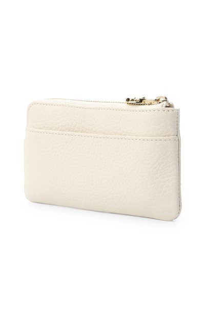 Портмоне с принтом Empire Signature сшили из текстиля с фактурным полимерным покрытием. Переднюю панель декорировали логотипом марки, а на задней разместили карман. Внутри – центральный отсек для монет, отделение для купюр, четыре слота для карт и два для чеков. Аксессуар двойно го сложения застегивается кнопками.