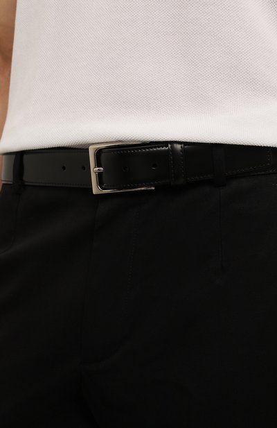 Для изготовления ремня стандартной ширины использовали зернистую кожу лося. Аксессуар с тренчиком в тон застегивается квадратной брендированной пряжкой из полированного серебристого металла.