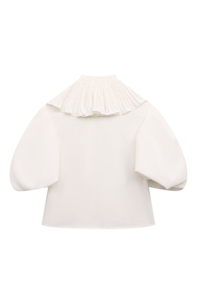 Свободную блузу с широкими рукавами сшили из тонкого шелковистого полиэстера. Модель с отложным плиссированным воротником, украшенным сбоку бантом, застегивается потайными пуговицами.