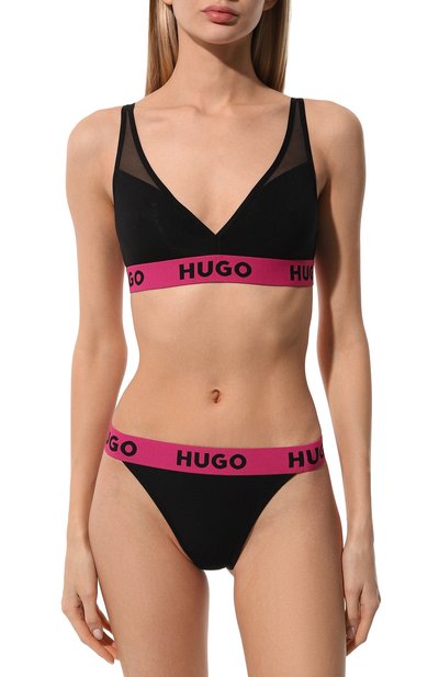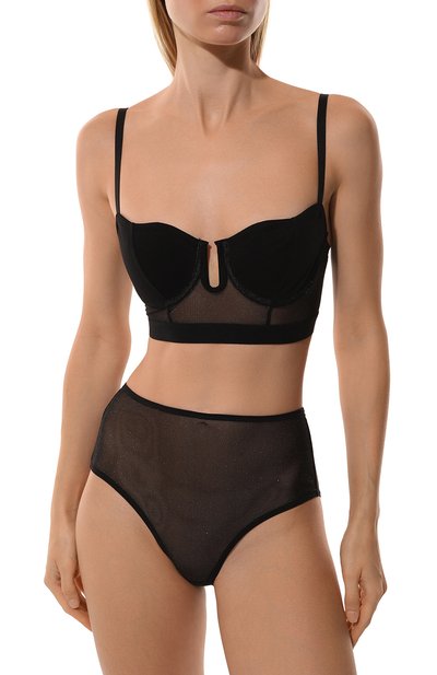Для изготовления бюстгальтера-бралетта Illusion использовали эластичную вискозу, а геометричные вставки спереди и на мягких чашечках выполнили из прозрачного французского тюля. Модель с раздваивающимися на спинке регулируемыми бретелями застегивается крючками сзади.