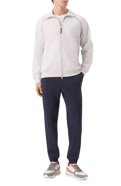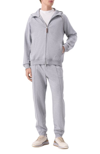 Меланжевую толстовку из линии Travelwear декорировали неброским принтом Eternal Balance, заключенным в вышитый логотип. Модель с рукавами реглан и двумя карманами на молниях выполнили из хлопкового футера.