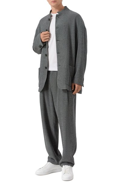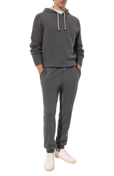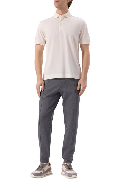 Джоггеры из линии Travelwear сшили из хлопкового трикотажа френч терри с добавлением нейлона. Модель дополнили фактурными стрелками, регулируемым поясом-кулиской, четырьмя карманами и короткими молниями снизу. Слева изделие украсили геральдической эмблемой марки.
