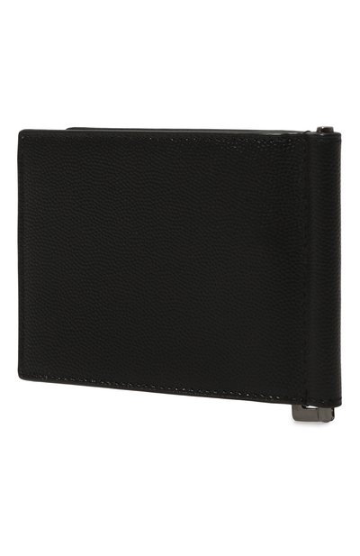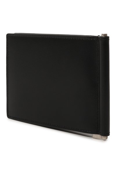 Зажим для купюр выполнили в технике intrecciato из узких полос гладкой телячьей кожи. Внутри аксессуара с металлической клипсой предусмотрели шесть слотов для карт.