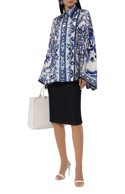 В линию Blu Mediterraneo вошла блуза с английским воротником и накладными карманами. Модель из шелкового твила с принтом Majolica застегивается перламутровыми пуговицами. В комплекте — пояс-лента.