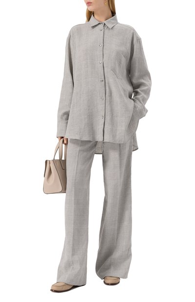 Свободную рубашку из чуть эластичной полушерсти можно носить не только с джинсами, но и с мини-платьем из такой же ткани. Модель со складками на спинке дополнили нагрудными карманами.
