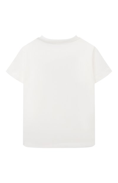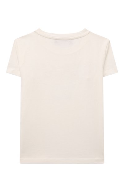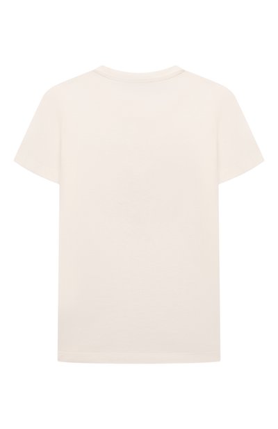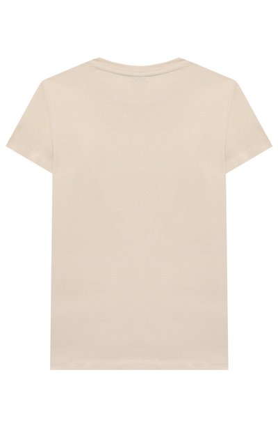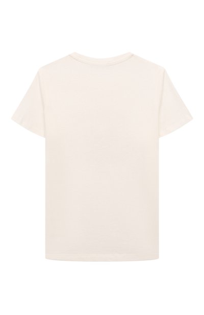 Для пошива футболки использовали мягкое хлопковое джерси, которое хорошо пропускает воздух и поддерживает оптимальный микроклимат. Модель с круглой горловиной украсили цветочным логотипом бренда.
