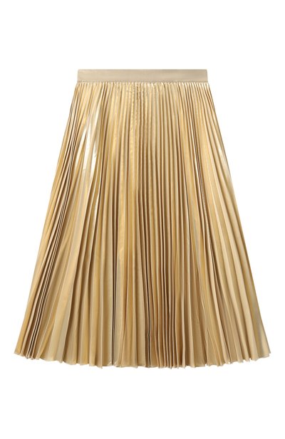 Для пошива расклешенной плиссированной юбки использовали металлизированный текстиль. Модель, застегивающуюся на молнию сбоку, декорировали небольшой пряжкой Medusa '95 на широком поясе.